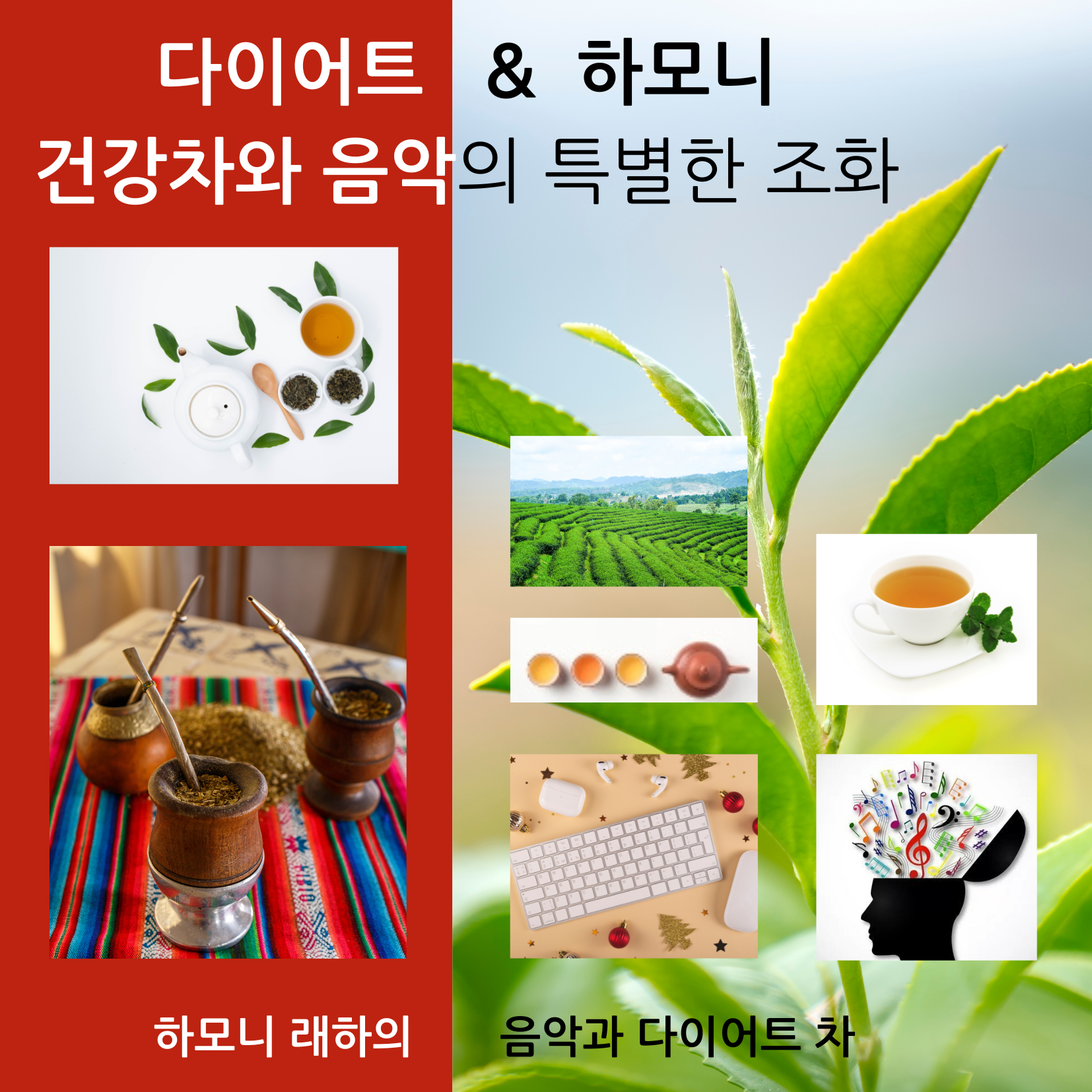 쁘띠 음악 건강 칼럼 - 건강 차와 음악의 특별한 조화 - Dr. 이래하, 건강한 다이어트를 위해 차와 음악을 일상 속에서 조화롭게 활용하는 방법은 매우 효과적입니다. 이 두 가지 요소를 일상에 적절히 결합하면, 몸과 마음 모두를 건강하게 유지할 수 있습니다. 아침에 하루를 시작할 때, 클래식 음악과 함께 녹차 한 잔을 마시면 대사 촉진과 집중력을 동시에 높일 수 있습니다. 녹차는 체중 감량에 도움을 주는 효능이 있으며, 클래식 음악은 뇌를 안정시키고 하루를 활기차게 시작할 수 있도록 돕습니다. 추천 음악으로는 바흐의 ‘브란덴부르크 협주곡’을 추천합니다. 이 곡은 클래식 음악의 대표적인 예로, 마음을 차분하게 만들어 줍니다. 오후에는 우롱차와 재즈 음악을 함께 즐기며 식사 후 피로를 풀어보세요. 우롱차는 소화를 돕고 지방 분해를 촉진하는 데 효과적이며, 재즈 음악은 감정의 균형을 맞추고 여유로운 분위기를 만들어 줍니다. 추천 음악으로는 마일스 데이비스의 ‘So What’을 들으며, 마음의 안정과 피로 해소를 동시에 할 수 있습니다. 저녁에는 마테차와 Lo-Fi 음악으로 하루를 마무리하며, 심신을 안정시키는 것이 중요합니다. 마테차는 피로 해소와 포만감을 유지하는 데 도움을 주며, Lo-Fi 음악은 몸과 마음을 진정시켜 숙면을 준비하게 만듭니다. 추천 음악으로는 ‘Lo-Fi Chill Mix’를 선택하여 편안한 분위기를 즐기세요. 이렇게 차와 음악을 결합하여 만든 다이어트 루틴은 체중 감량을 넘어서 몸과 마음의 조화를 이루는 중요한 방법이 됩니다. 일상 속에서 이러한 루틴을 실천한다면, 보다 건강하고 지속 가능한 다이어트가 가능할 것입니다.